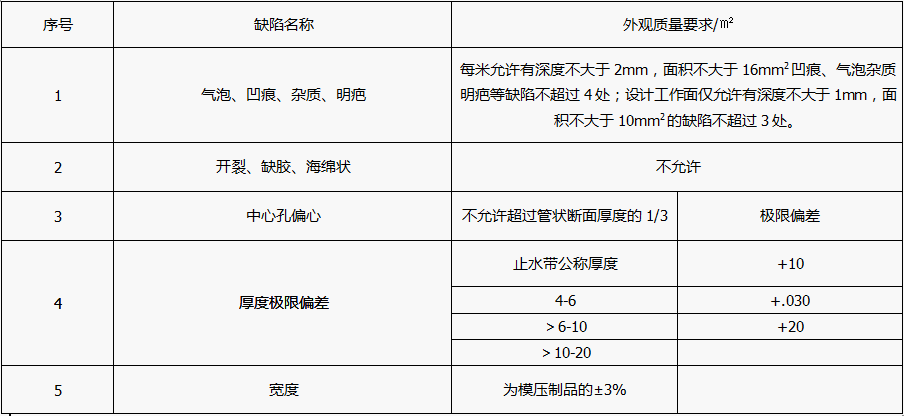 橡膠止水帶質(zhì)量要求及性能指標(biāo)