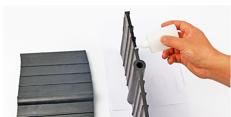 粘接劑冷接是采用橡膠止水帶專用冷接膠水、采用搭接法把止水帶需要接頭的斷面用磨光機磨平5~10厘米、涂膠水壓實即可,具有強度高、凝固快的優(yōu)點、施工方便、省時省力,可達(dá)到一般工程質(zhì)量要求。