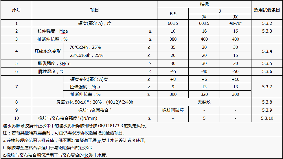 橡膠止水帶質(zhì)量要求及性能指標(biāo)