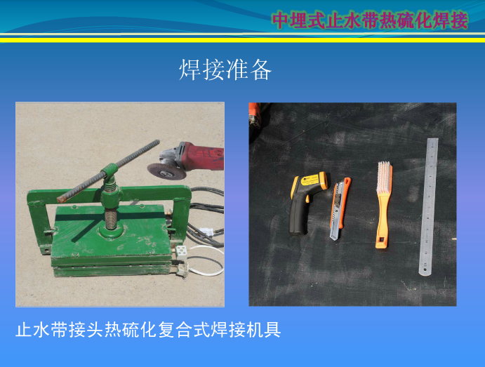 第一步:首先準(zhǔn)備好橡膠止水帶接頭所需要的熱硫化復(fù)合式焊接機具。